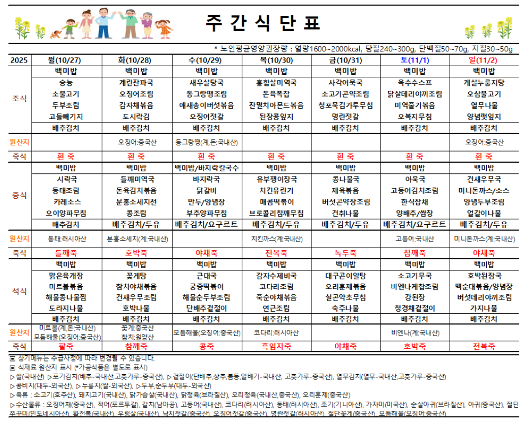 11¿ù ù°ÁÖ ½Ä´ÜÇ¥ (11/3~11/9)